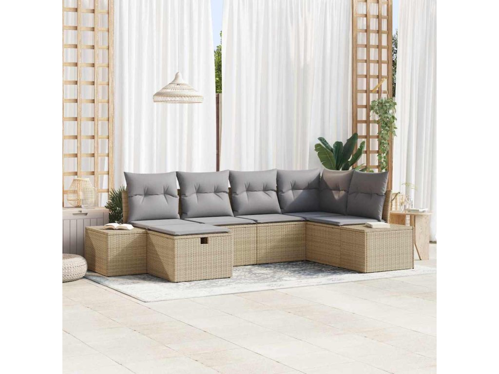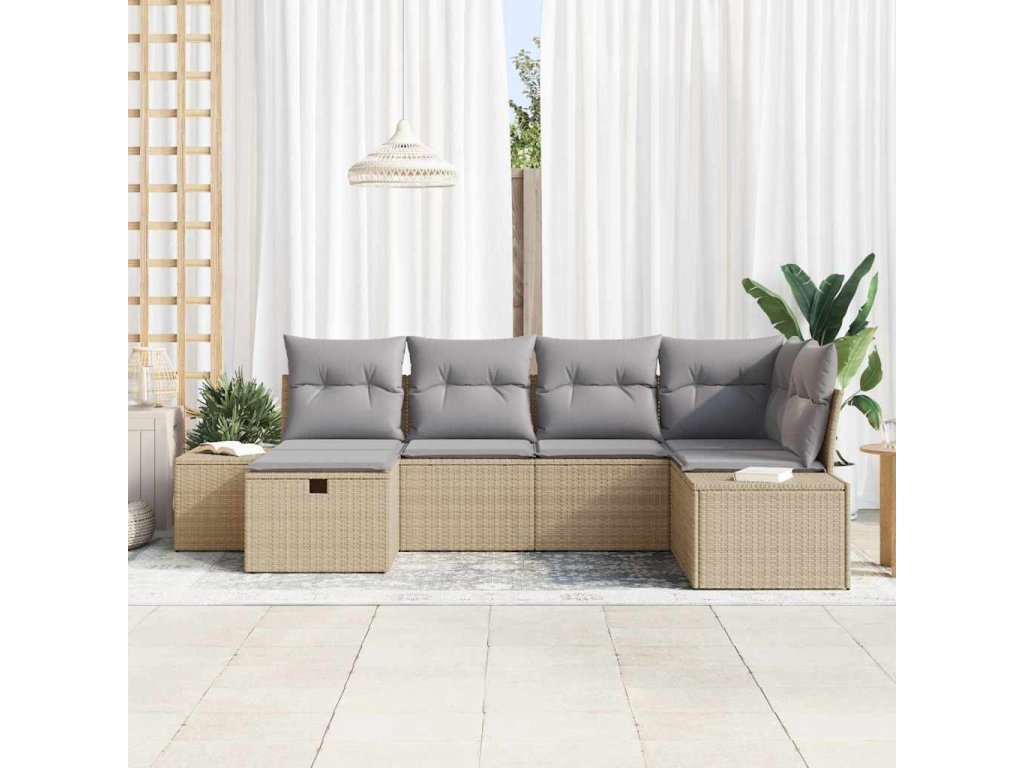Multidom Súprava záhradných pohoviek s vankúšom 6 pcs Béžová polyratan