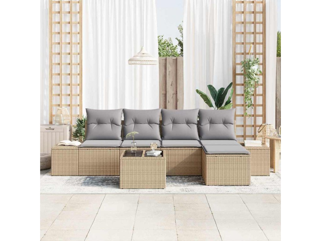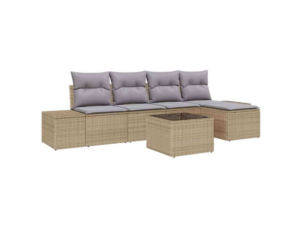 Multidom Súprava záhradných pohoviek s vankúšom 6 pcs Béžová polyratan