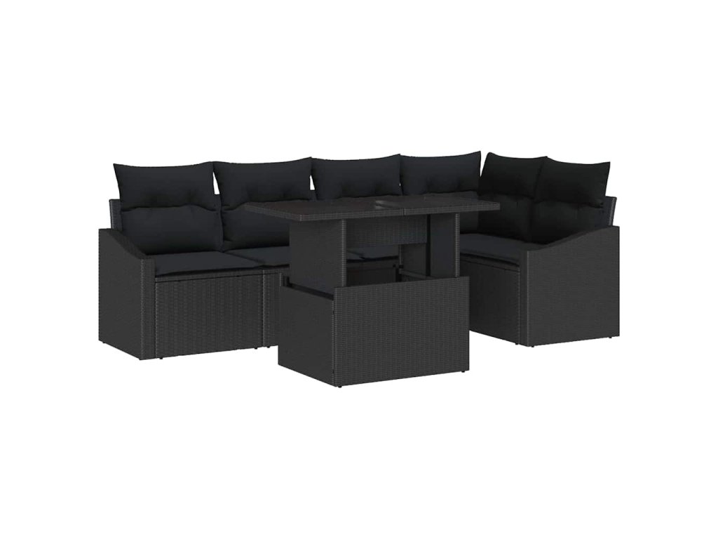 Multidom Súprava záhradných pohoviek s vankúšom 6 pcs Čierna polyratan