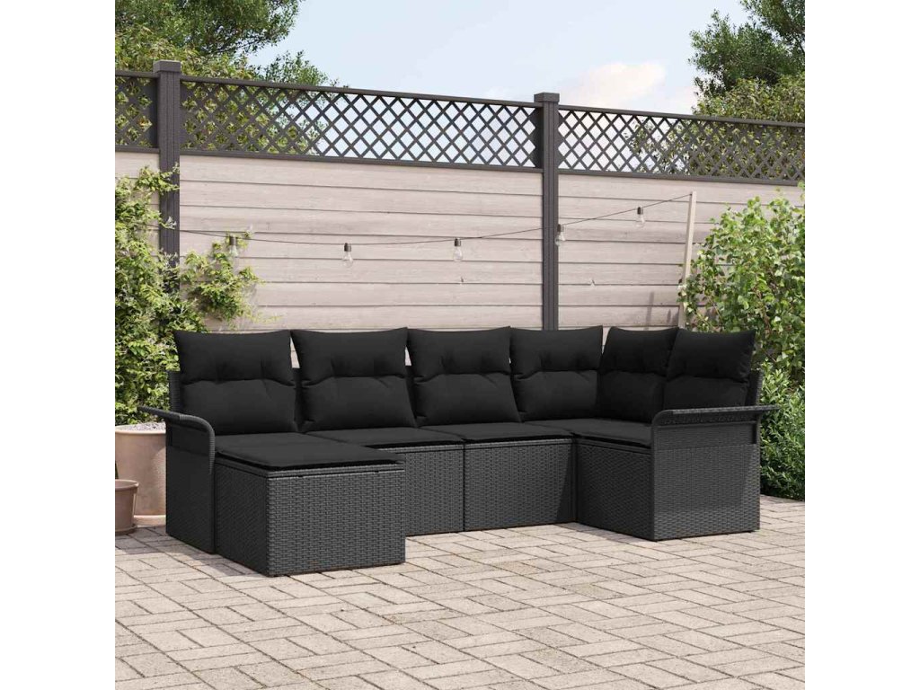 Multidom Súprava záhradných pohoviek s vankúšom 6 pcs Čierna polyratan