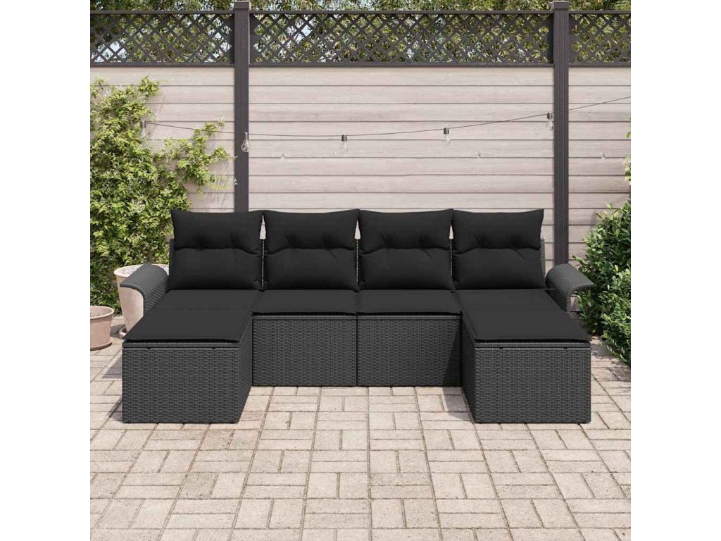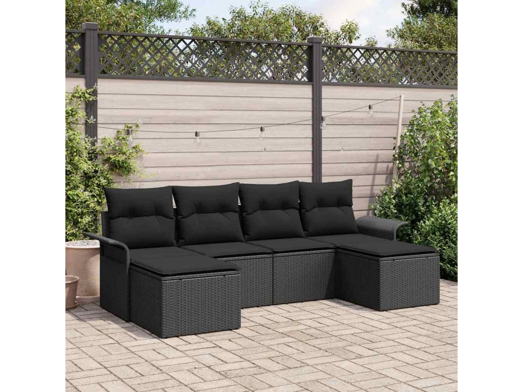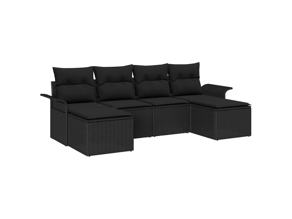 Multidom Súprava záhradných pohoviek s vankúšom 6 pcs Čierna polyratan