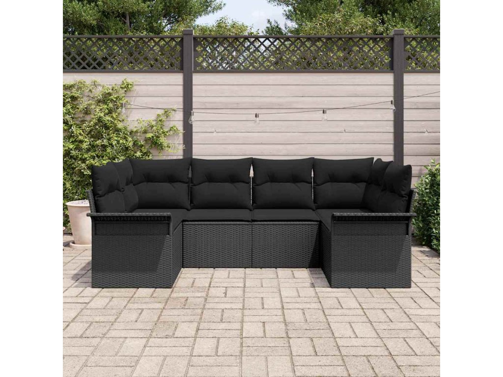 Multidom Súprava záhradných pohoviek s vankúšom 6 pcs Čierna polyratan