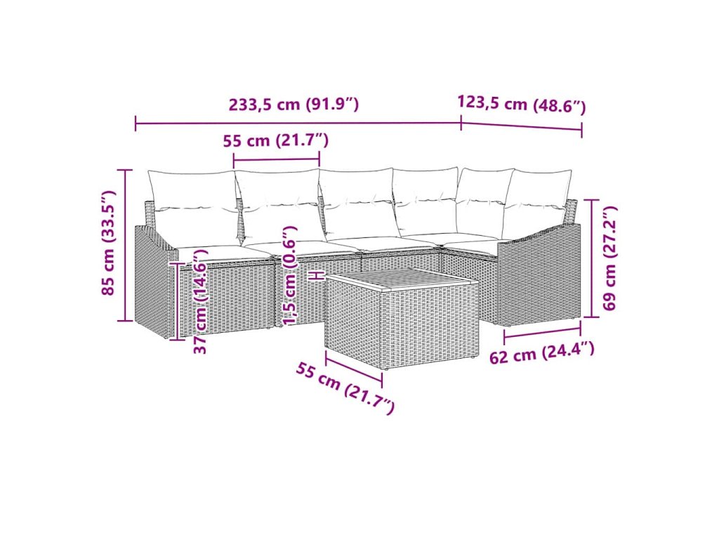 - Komplexné komponenty: Sada obsahuje 2 stredové sedačky, 1 pohovku s podrúčkami, 2 taburety a 1 záhradný stolík, takže si vytvoríte pohodlné sedenie pre rôzne príležitosti.