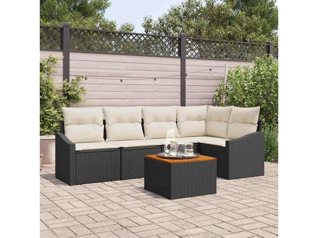 Multidom Súprava záhradných pohoviek s vankúšom 6 pcs Čierna polyratan