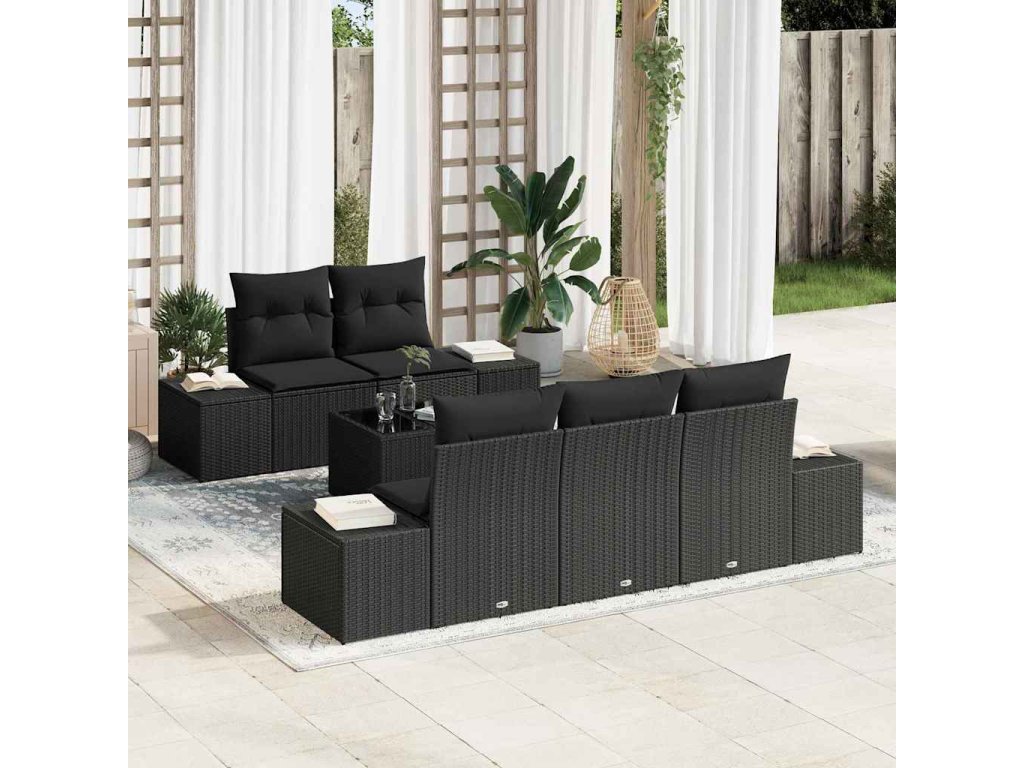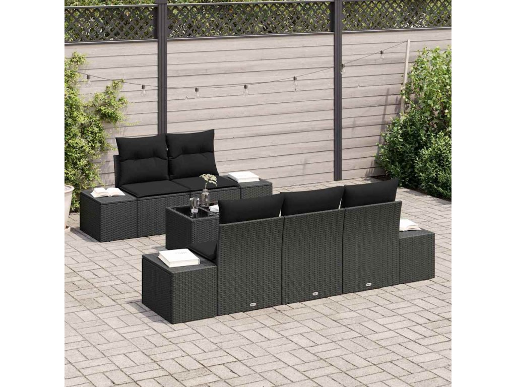 Multidom Súprava záhradných pohoviek s vankúšom 6 pcs Čierna polyratan