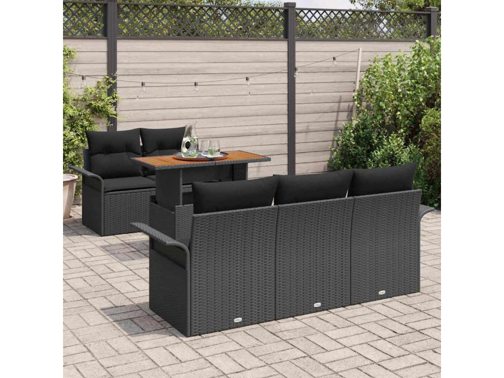Multidom Súprava záhradných pohoviek s vankúšom 6 pcs Čierna polyratan