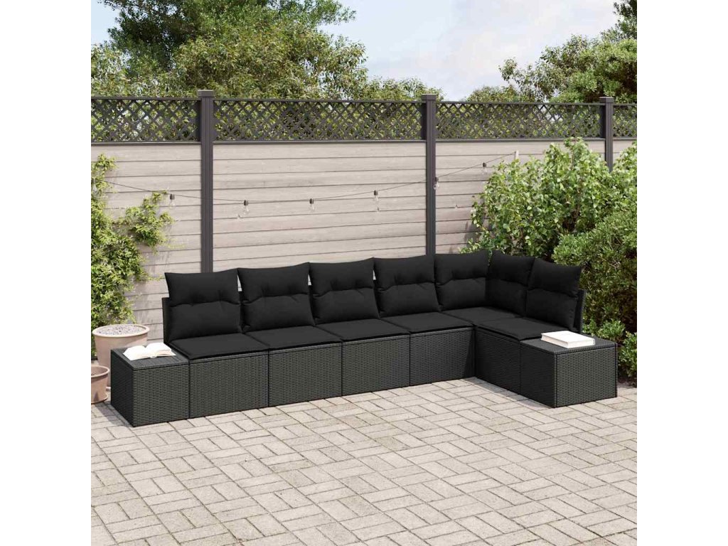 Multidom Súprava záhradných pohoviek s vankúšom 6 pcs Čierna polyratan