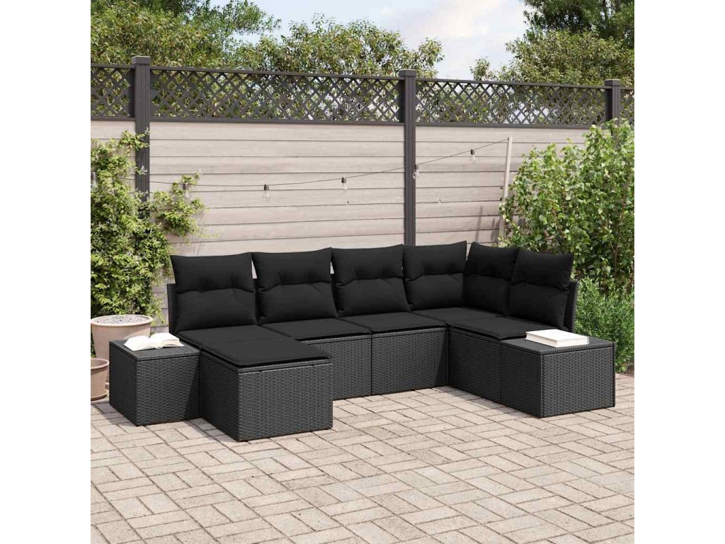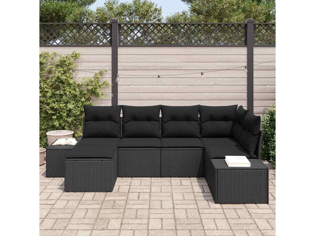 Multidom Súprava záhradných pohoviek s vankúšom 6 pcs Čierna polyratan