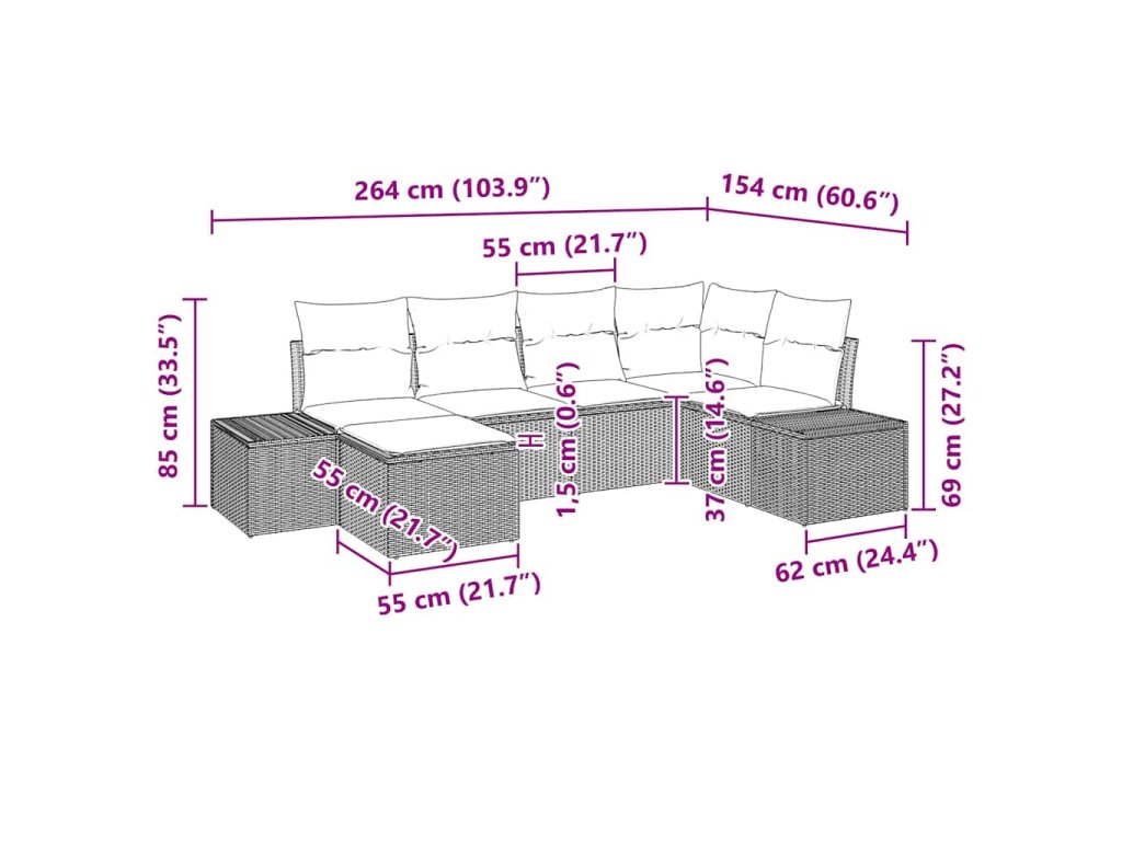 - Komplexné komponenty: Set obsahuje sériu dobre polstrovaných sedadiel s ratanovými operadlami, všetko navrhnuté pre pohodlné sedenie. Venkovní vankúše sú z odolnej látky, pripravené na dážď aj slnko.