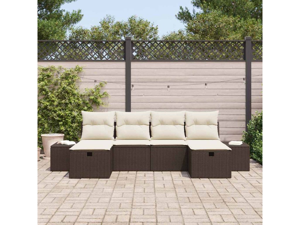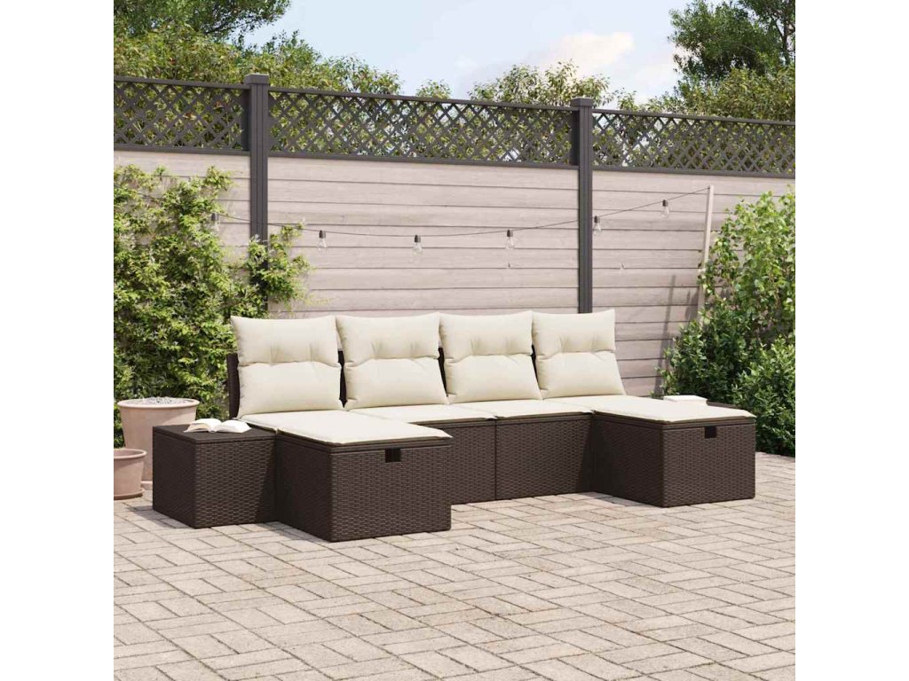 Multidom Súprava záhradných pohoviek s vankúšom 6 pcs Hnedá polyratan
