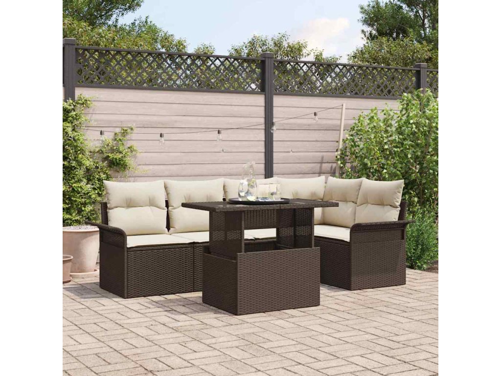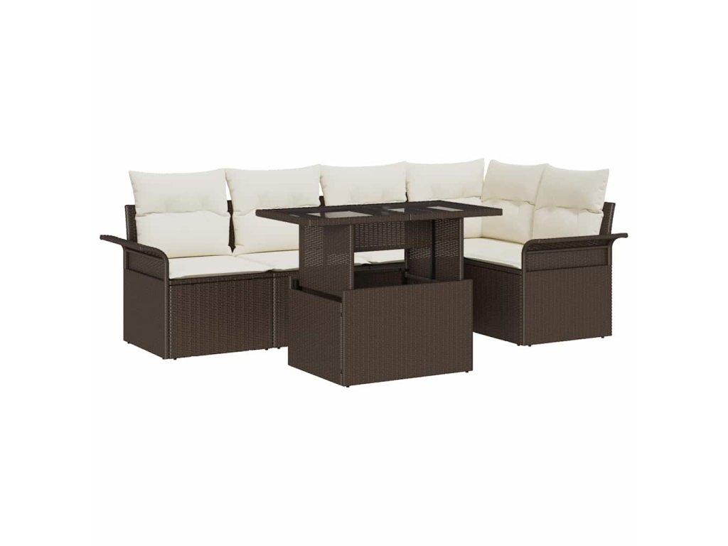 Multidom Súprava záhradných pohoviek s vankúšom 6 pcs Hnedá polyratan