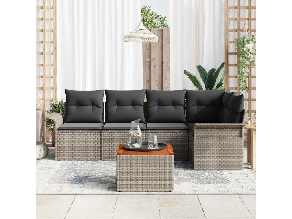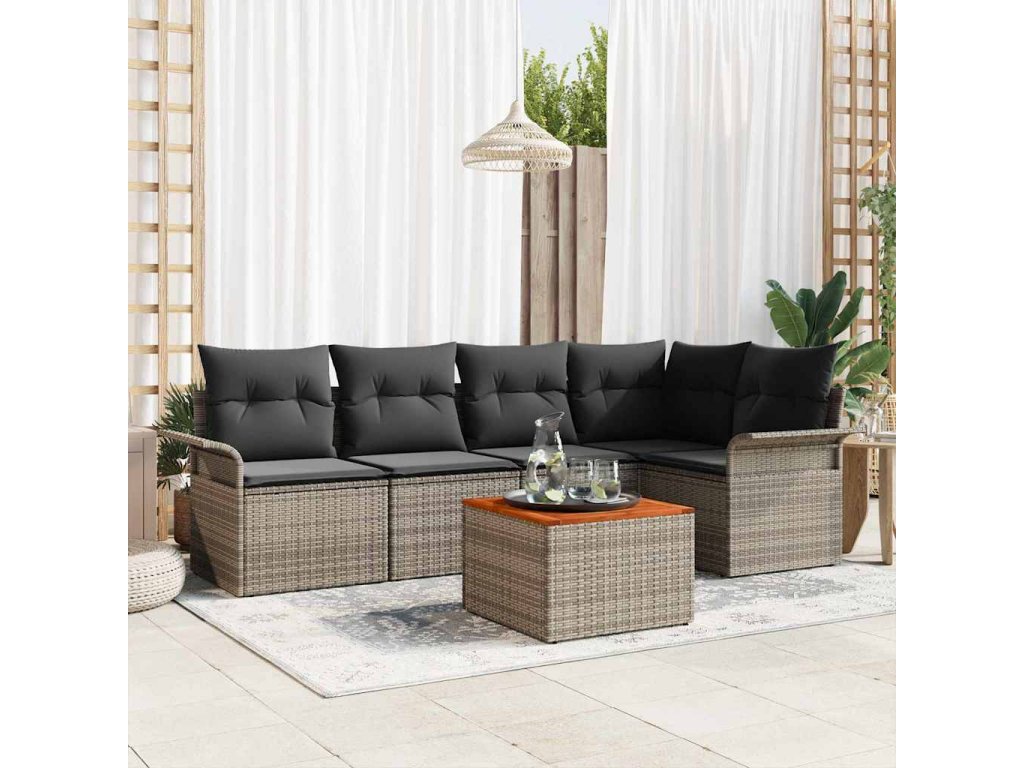 Multidom Súprava záhradných pohoviek s vankúšom 6 pcs Sivá polyratan