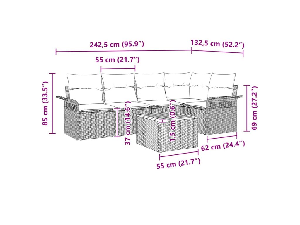 Tento modulárny záhradný gaučový set je úplným stelesnením vonkajšej elegance. Je navrhnutý tak, aby oživil akúkoľvek záhradu, terasu alebo dvore. S moderným dizajnom, ktorý spája krásu a praktickosť, je ideálnou voľbou pre rôzne vonkajšie prostredia. Set má skvelý vzhľad, čisté línie a minimálne ozdoby, čím vytvára štýlový rustikálny dojem, ktorý sa perfektne hodí do prírody. Je super na spoločenské akcie, rodinné chvíle alebo len tak na relax v záhrade.