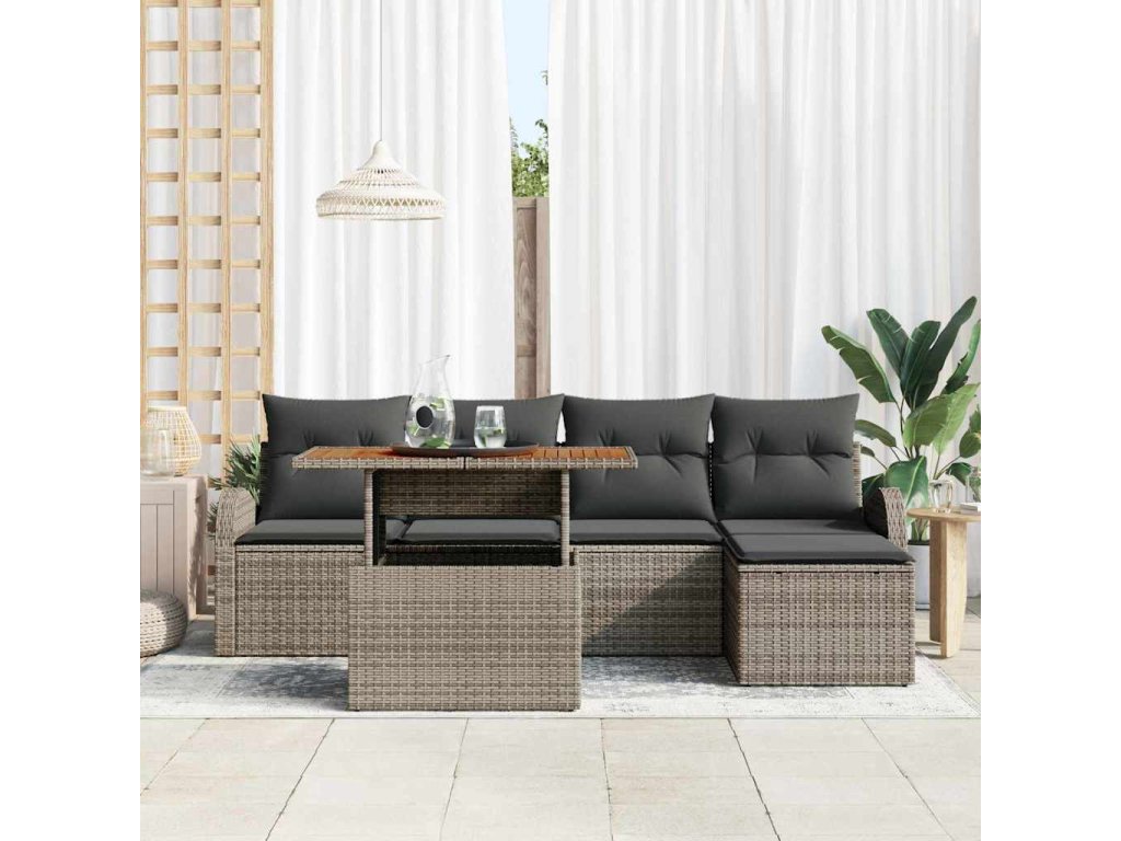 Multidom Súprava záhradných pohoviek s vankúšom 6 pcs Sivá