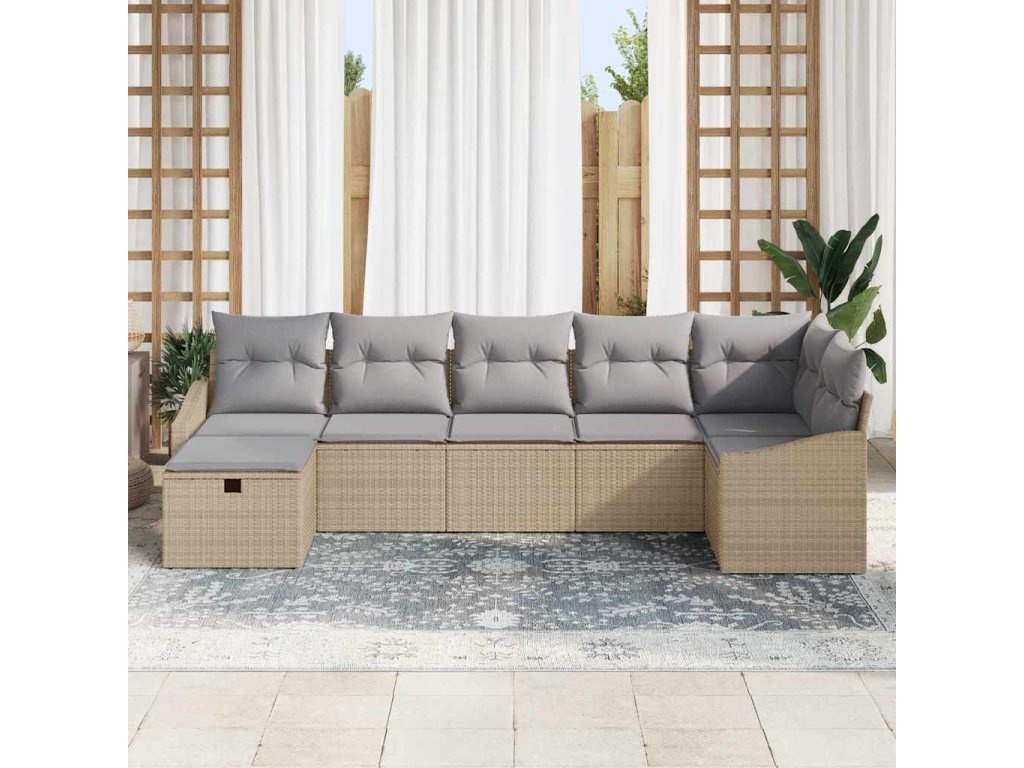 Multidom Súprava záhradných pohoviek s vankúšom 7 pcs Béžová Poly ratan