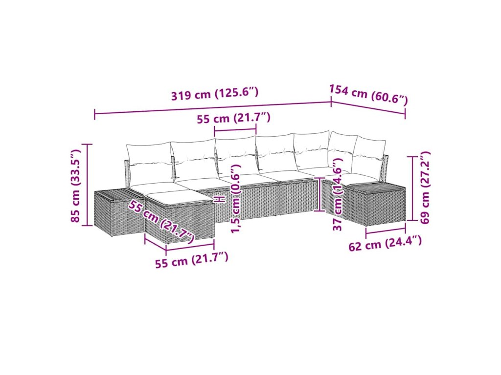 Multidom Súprava záhradných pohoviek s vankúšom 7 pcs Béžová polyratan