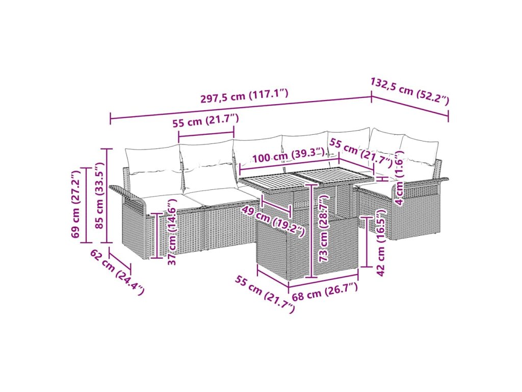 - Dodávané komponenty: Set obsahuje sedacie moduly a stôl, všetko starostlivo navrhnuté. Dobré polstrovanie a zips na vankúšoch uľahčuje starostlivosť a zaručuje pohodlie pri dlhých sedeniach.