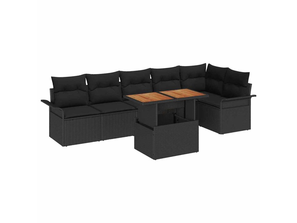 Multidom Súprava záhradných pohoviek s vankúšom 7 pcs Čierna