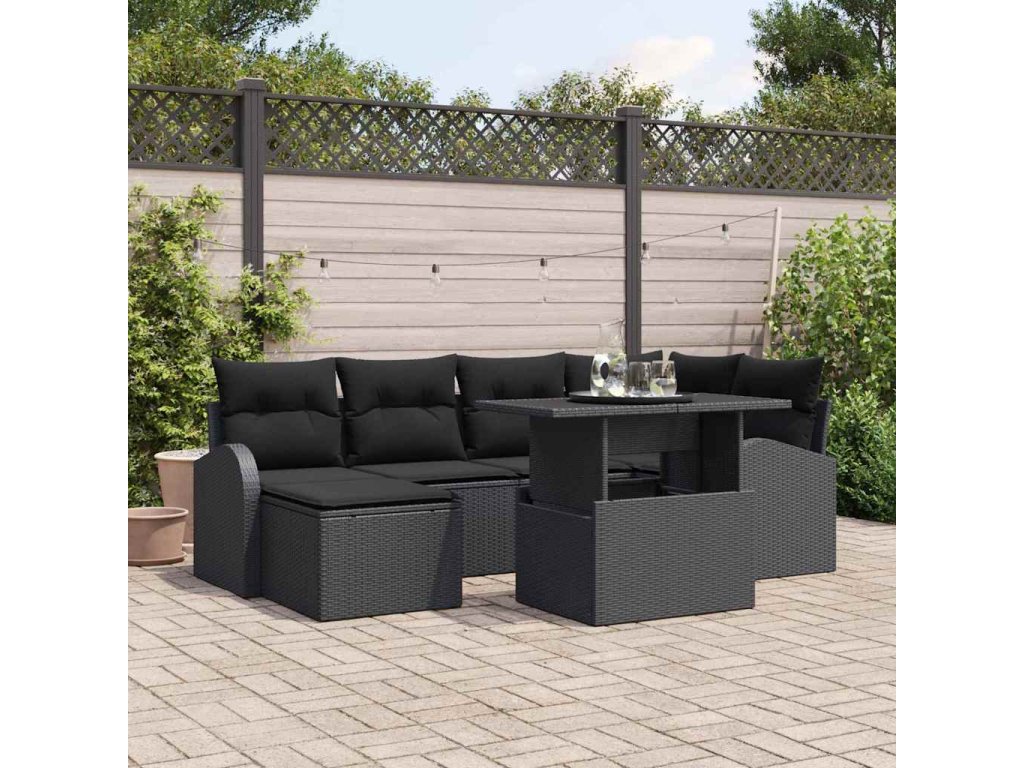 Multidom Súprava záhradných pohoviek s vankúšom 7 pcs Čierna