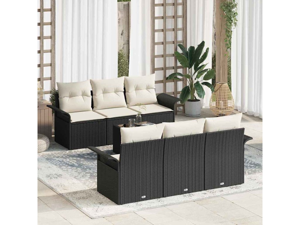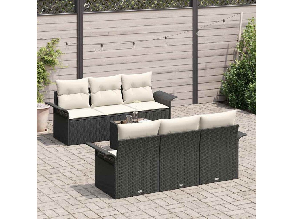 Multidom Súprava záhradných pohoviek s vankúšom 7 pcs Čierna polyratan