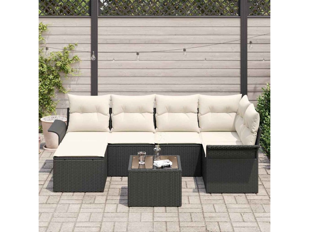 Multidom Súprava záhradných pohoviek s vankúšom 7 pcs Čierna polyratan