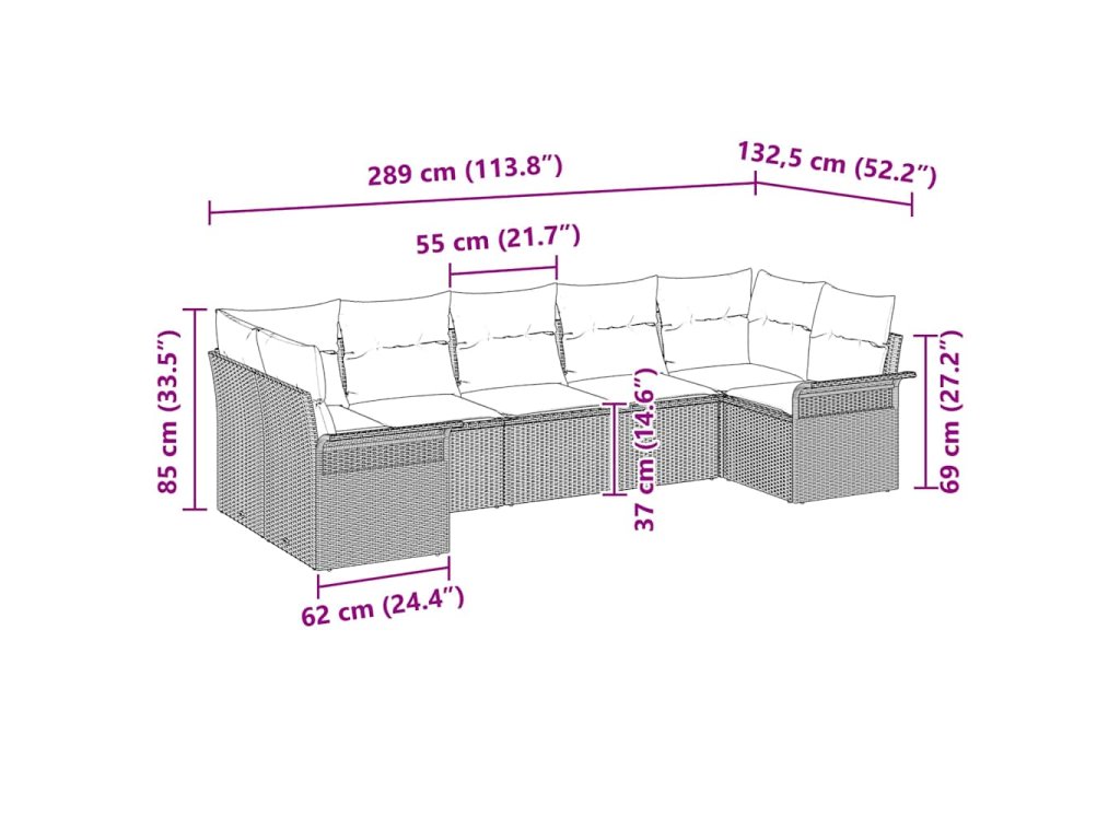 - Kvalitné materiály: Súprava pohoviek je vyrobená z trvanlivého poly ratanu, ktorý odoláva bežnému opotrebovaniu. Materiál je skvelý proti UV lúčom, takže si zachová svoj vzhľad aj na slnku. Vankúše sú z polyesterového vlákna, poskytujú pohodlie a sú tiež odolné.