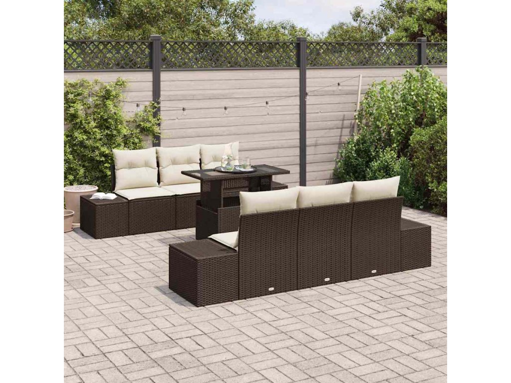Multidom Súprava záhradných pohoviek s vankúšom 7 pcs Hnedá a smotanová