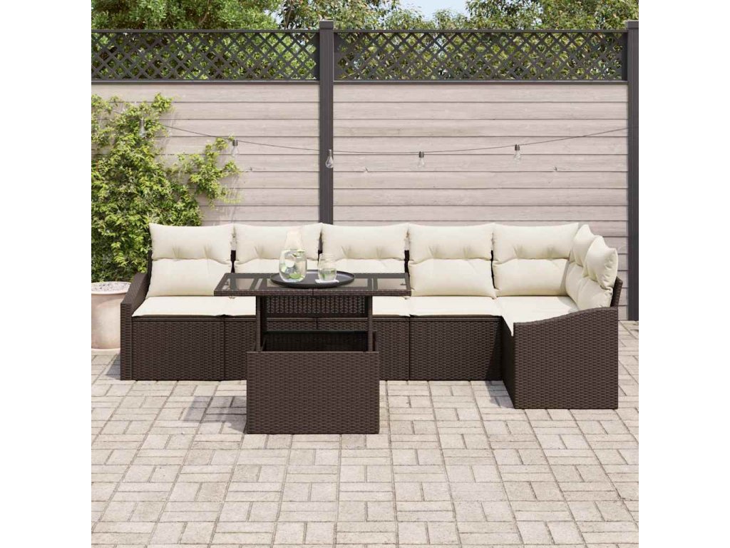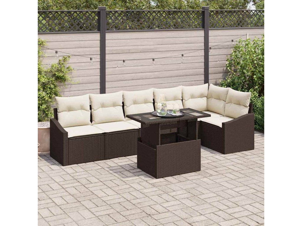 Multidom Súprava záhradných pohoviek s vankúšom 7 pcs Hnedá a smotanová