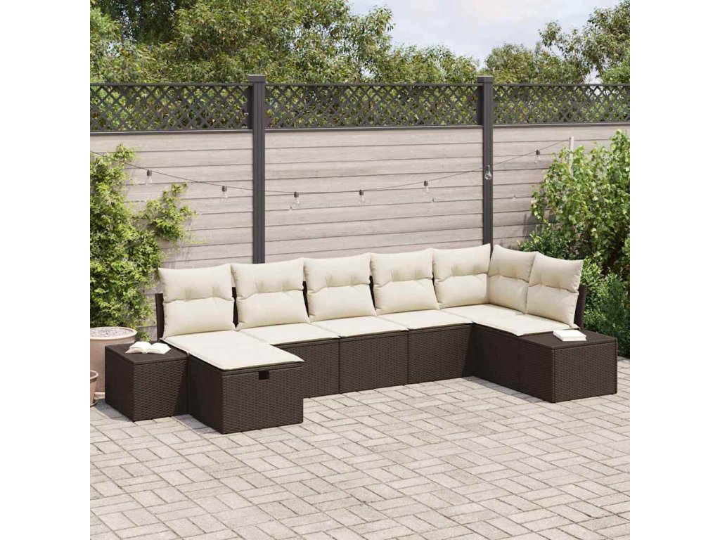 Multidom Súprava záhradných pohoviek s vankúšom 7 pcs Hnedá polyratan