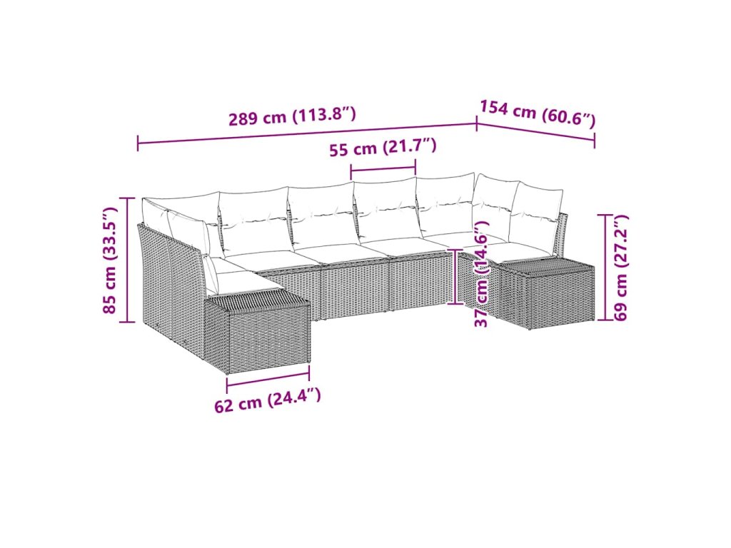 - Zložené komponenty: Každá konfigurácia má rohové sedadlá, stredné sedadlá a bočné pohovky, k tomu vankúše z polyesteru. Tieto komponenty sa dajú jednoducho usporiadať na rôzne spôsoby, takže môžete pohodlne sedieť a mať oporu.