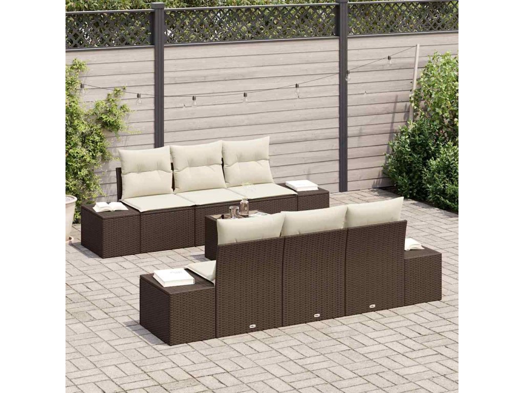 Multidom Súprava záhradných pohoviek s vankúšom 7 pcs Hnedá polyratan