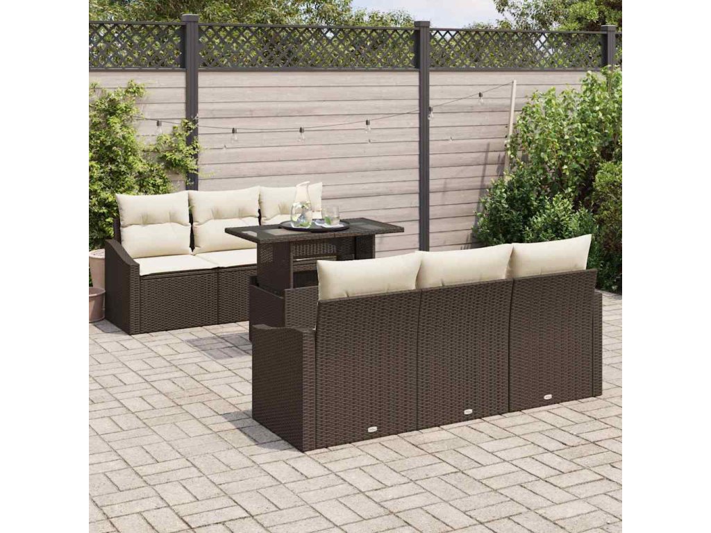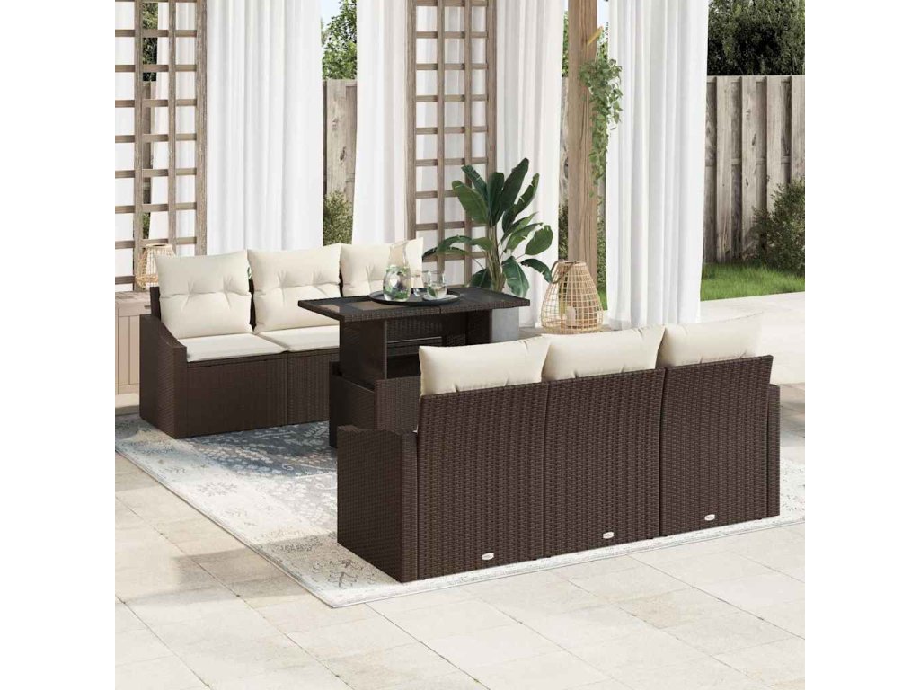 Multidom Súprava záhradných pohoviek s vankúšom 7 pcs Hnedá polyratan