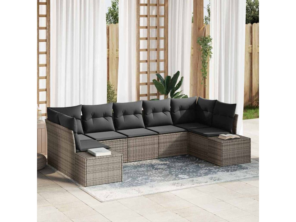 Multidom Súprava záhradných pohoviek s vankúšom 7 pcs Sivá polyratan