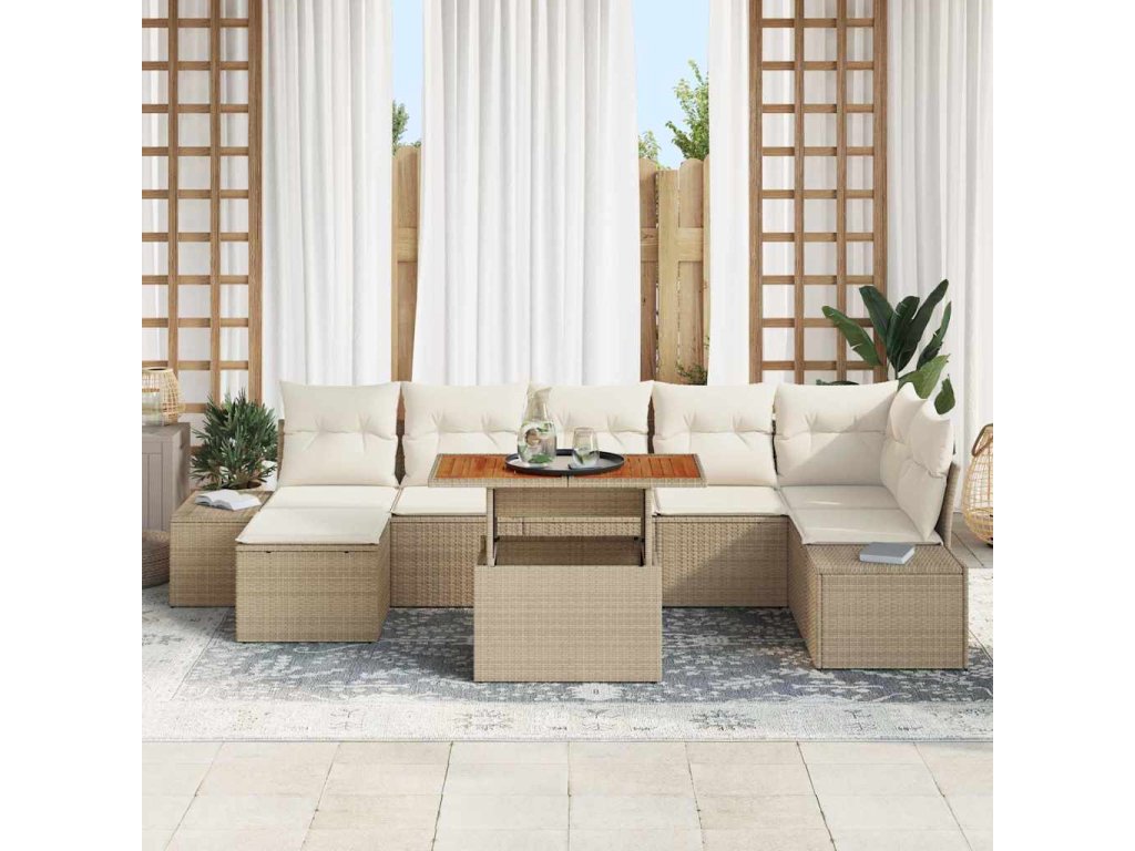 Multidom Súprava záhradných pohoviek s vankúšom 8 pcs Béžová a krémová