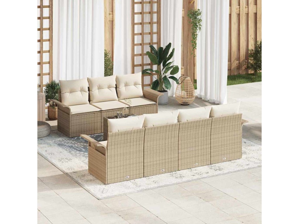 Multidom Súprava záhradných pohoviek s vankúšom 8 pcs Béžová polyratan