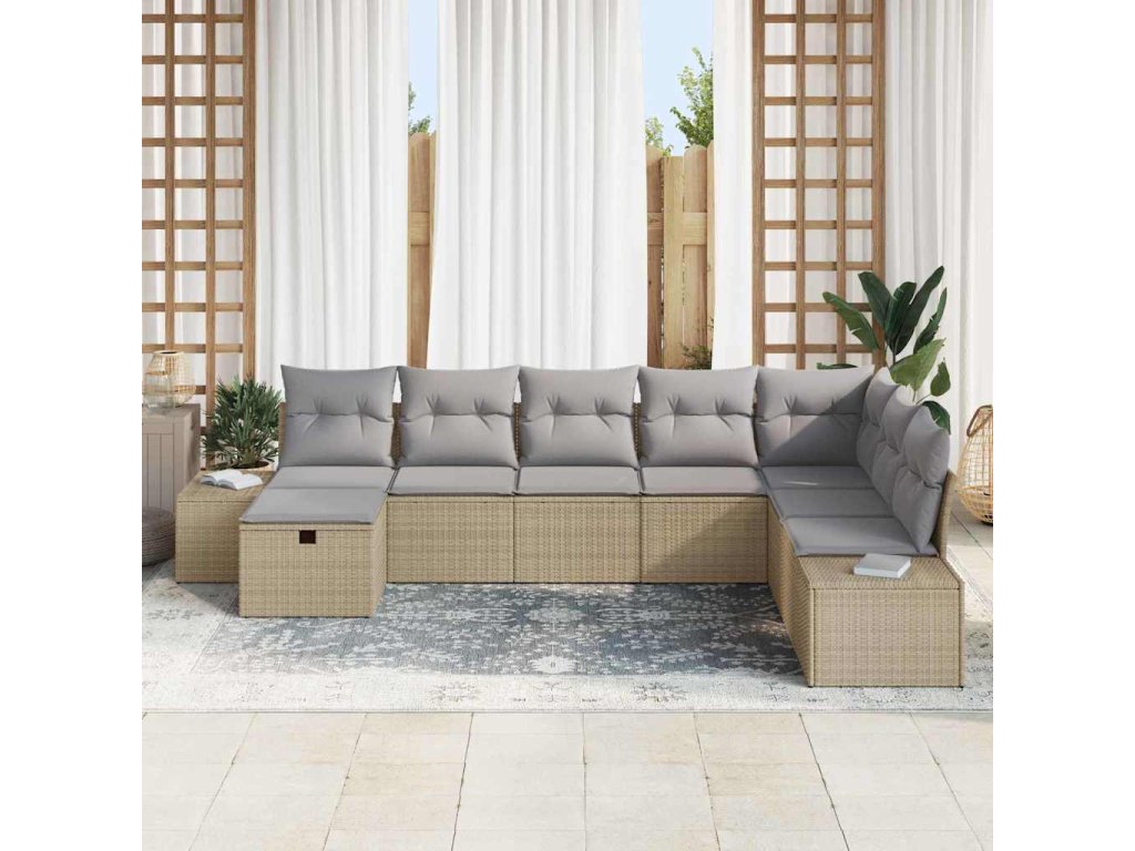 Multidom Súprava záhradných pohoviek s vankúšom 8 pcs Béžová polyratan