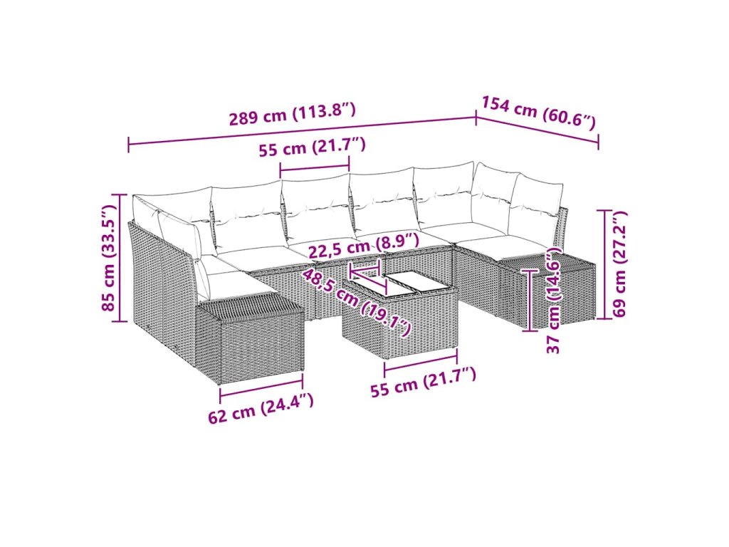 - Komplexné komponenty: Obsahuje 2 rohové sedačky, 3 stredné sedačky, 2 bočné pohovky a 1 stôl s tvrdeným sklom, ideálne pre rôzne vonkajšie aktivity. Bez problémov ho môžete prispôsobiť na akúkoľvek príležitosť.