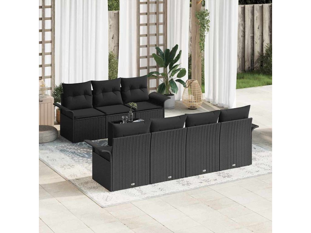 Multidom Súprava záhradných pohoviek s vankúšom 8 pcs Čierna polyratan