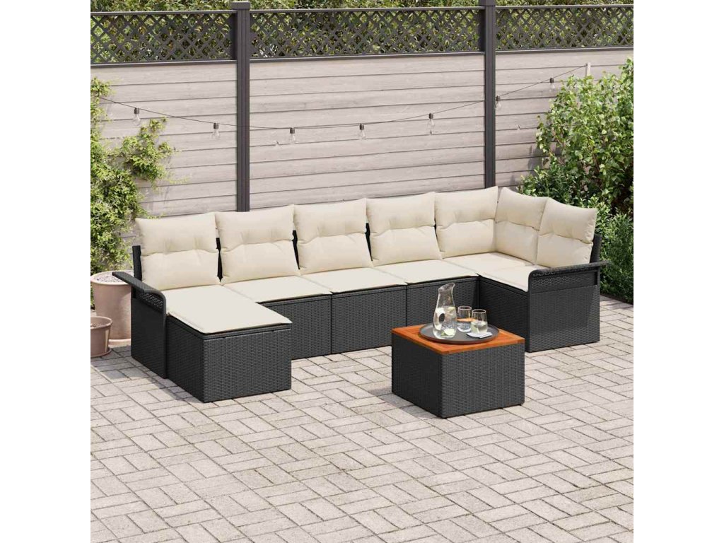 Multidom Súprava záhradných pohoviek s vankúšom 8 pcs Čierna polyratan