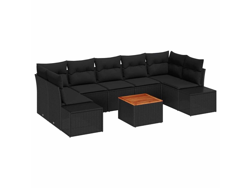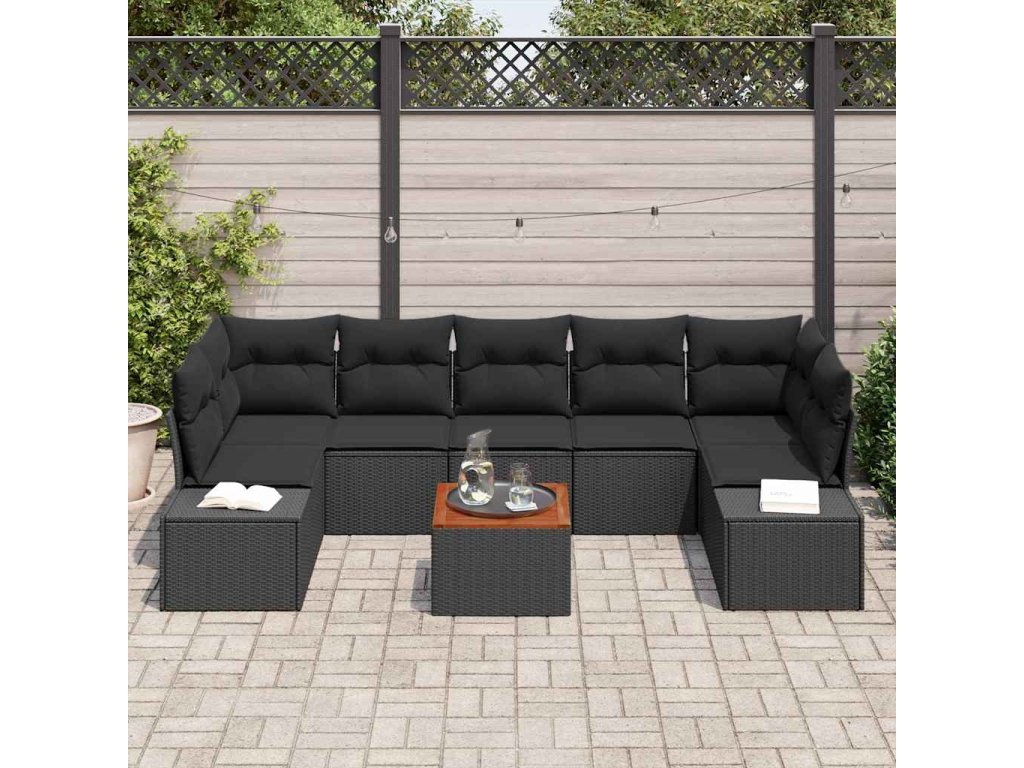Multidom Súprava záhradných pohoviek s vankúšom 8 pcs Čierna polyratan