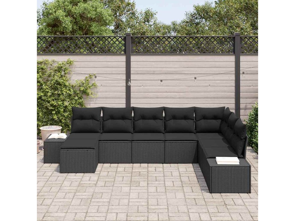 Multidom Súprava záhradných pohoviek s vankúšom 8 pcs Čierna polyratan