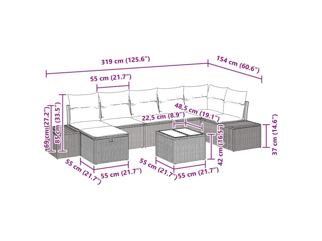 Táto moderná záhradná sedacia súprava ponúka spojenie štýlu a funkčnosti, ideálna pre každý vonkajší priestor, ako sú záhrady a terasy. S elegantným dizajnom, ktorý má čisté línie a menej ozdôb, vylepší váš priestor a poskytne pohodlné sedenie na rodinné stretnutia alebo pokojné chvíle pri čítaní. Predstavte si, ako si oddýchnete na tejto štýlovej súprave, cítite jemný jarný vánok, zatiaľ čo relaxujete s knihou alebo spokojne zabávate svojich hostí, čo premení váš vonkajší priestor na útulnú oázu.