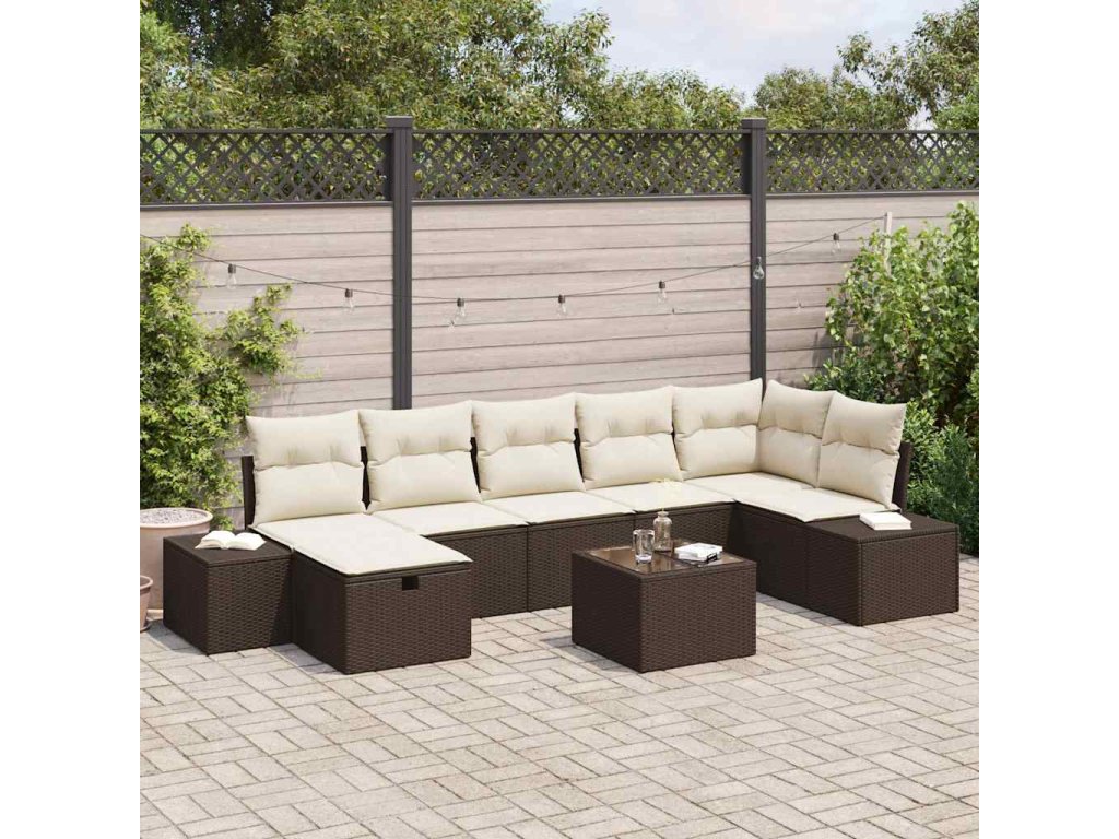 Multidom Súprava záhradných pohoviek s vankúšom 8 pcs Hnedá polyratan