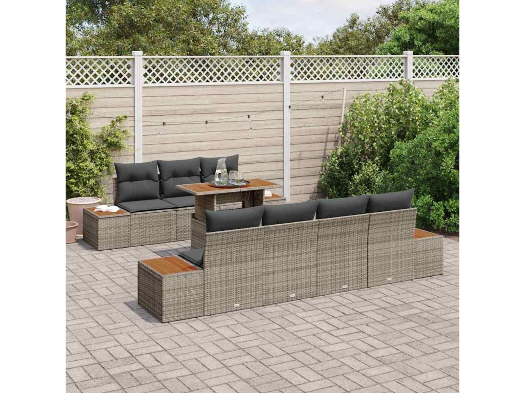 Multidom Súprava záhradných pohoviek s vankúšom 8 pcs Sivá Poly ratan