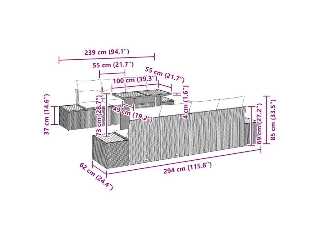 Tento set záhradných pohoviek je lákavý pre tvoju vonkajšiu terasu alebo záhradu. Jeho moderný a minimalistický štýl dodáva elegantný vzhľad do akéhokoľvek prostredia. Tkaný poly ratan a tmavohnedá farba vytvárajú nadčasový vzhľad, ktorý sa hodí k rôznym štýlom. Perfektné na relax a socializáciu, jeho modulárny dizajn ti umožní preusporiadať ho podľa vlastného vkusu, čo robí tento set ideálnou voľbou na pohodlné sedenie s rodinou a priateľmi.