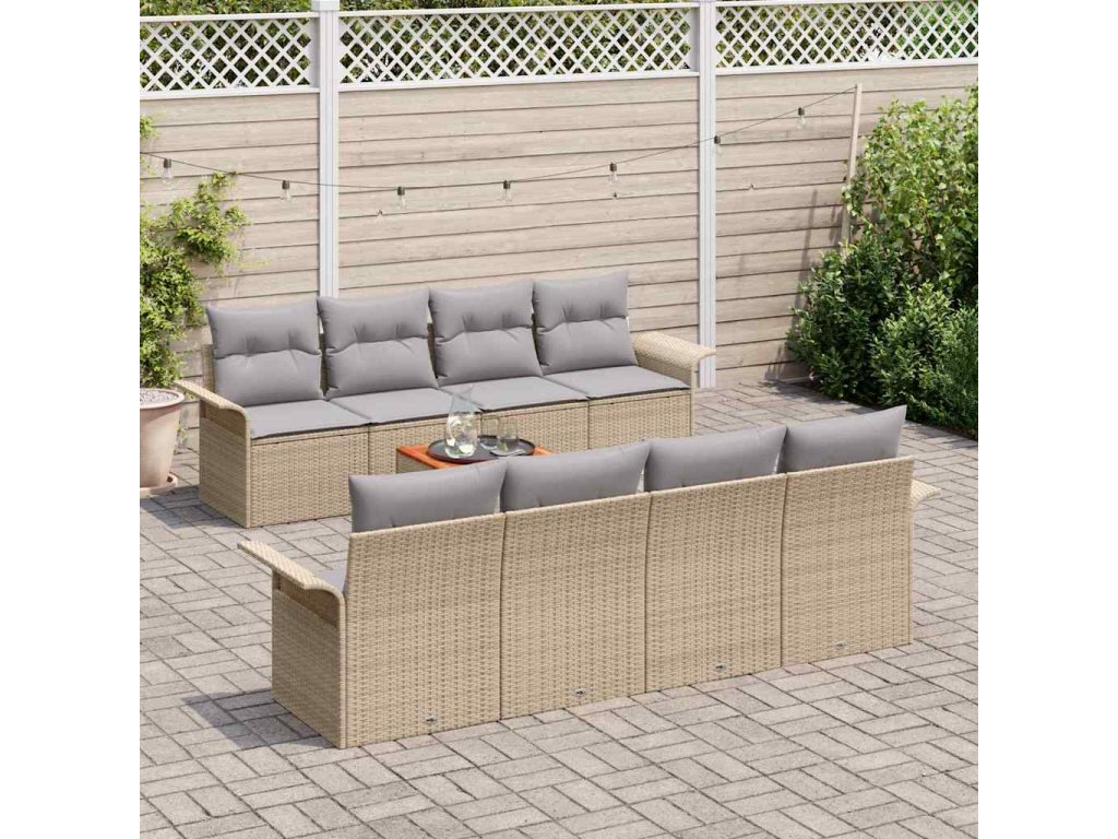 Multidom Súprava záhradných pohoviek s vankúšom 9 pcs Béžová polyratan