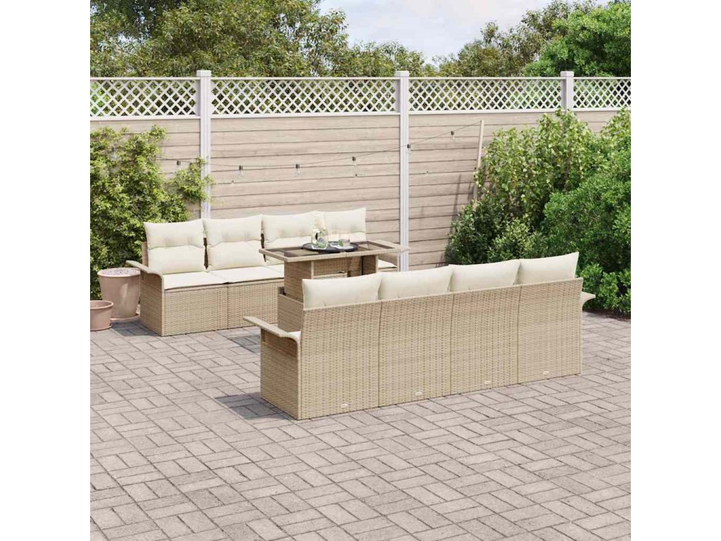 Multidom Súprava záhradných pohoviek s vankúšom 9 pcs Béžová polyratan