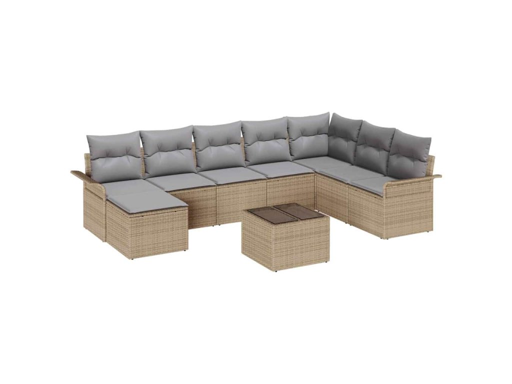 Multidom Súprava záhradných pohoviek s vankúšom 9 pcs Béžová polyratan