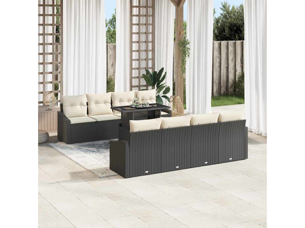 Multidom Súprava záhradných pohoviek s vankúšom 9 pcs Čierna polyratan
