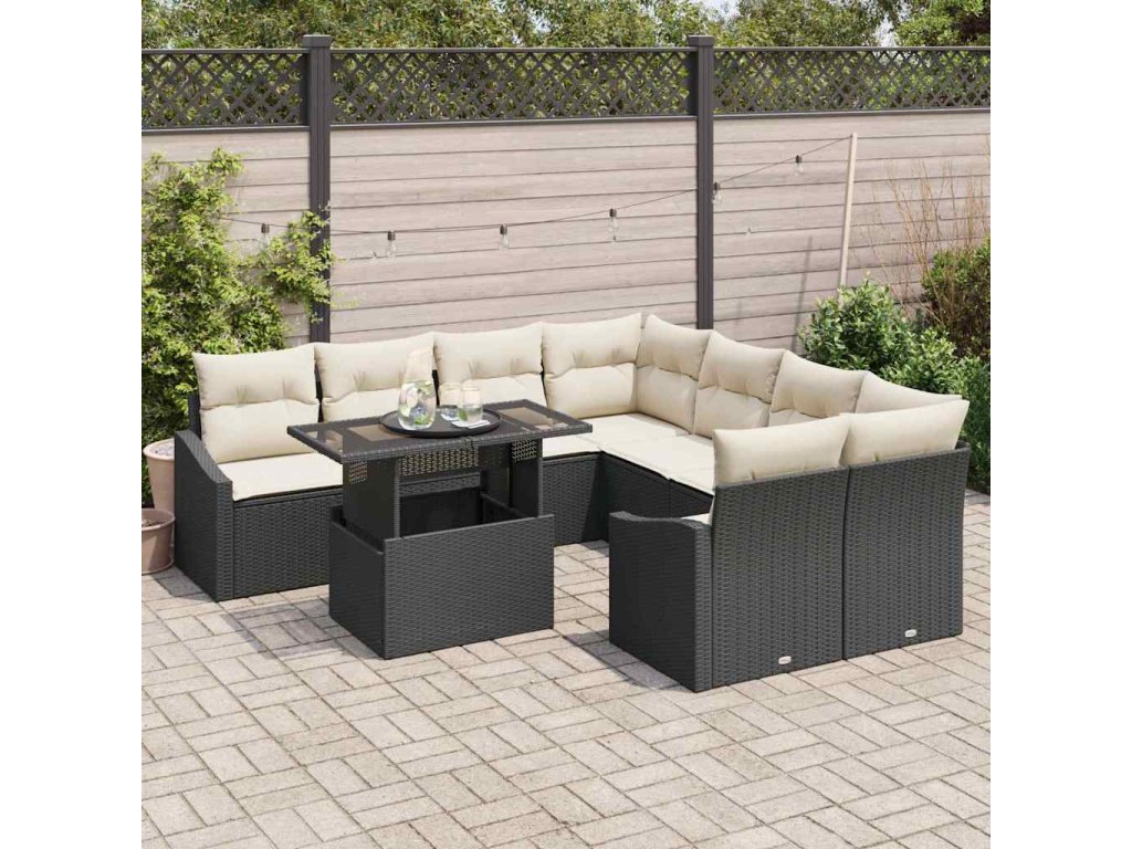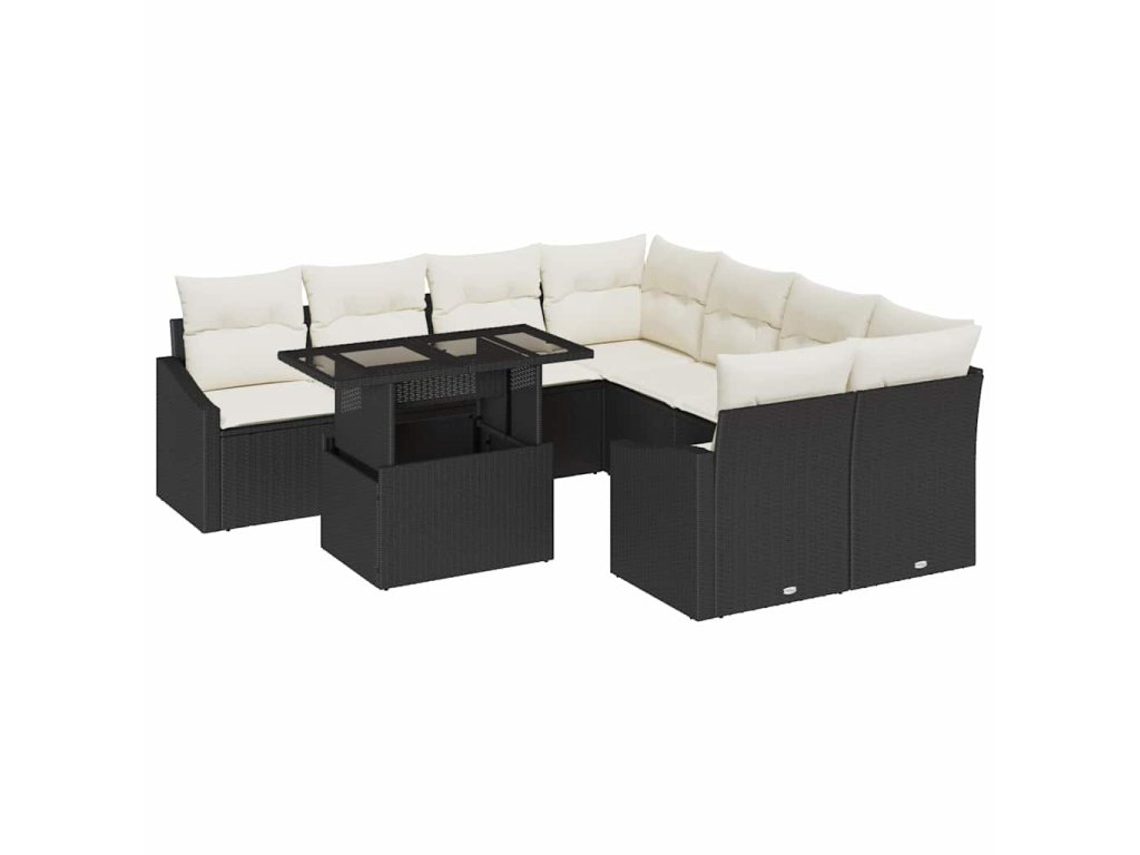 Multidom Súprava záhradných pohoviek s vankúšom 9 pcs Čierna polyratan